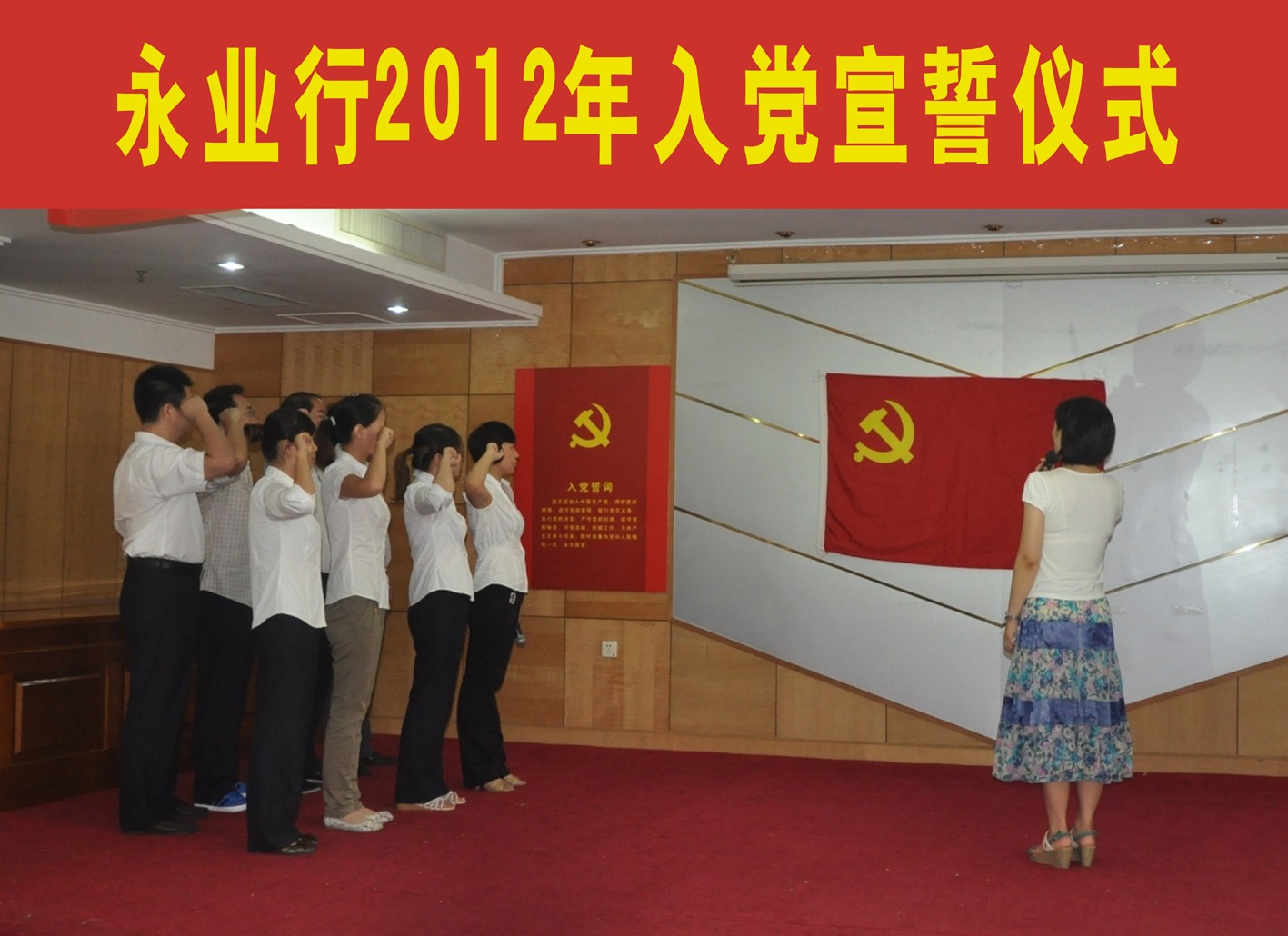 本次宣誓儀式在湖北消防招待所隆重舉行,永業(yè)行黨委全體成員和公司非黨人士高管、副總經(jīng)理及以上職務人員參加了儀式。黨委副書記靳劍輝擔任儀式主持人并向新入黨的同志表示祝賀。在領誓人楊雪蓮的帶領下,國土事務部總經(jīng)理吳學鋒、礦產(chǎn)評估部副總經(jīng)理孫宇、技術部副總經(jīng)理李尚平、十堰分部助理總經(jīng)理王美、黃石分部高級經(jīng)理朱雙雙、房地產(chǎn)評估一部經(jīng)理王建波、孝感分部經(jīng)理吳賢玲、地礦咨詢一部助理經(jīng)理張忠超等8名新黨員舉右手握拳并面向黨旗宣讀入黨誓詞。新黨員宣誓后,黨委副書記靳劍輝代表黨委對他們提出要求,希望新黨員在各自崗位上加倍努力工作,充分發(fā)揮黨員的先鋒模范作用,無愧于共產(chǎn)黨員的光榮稱號。