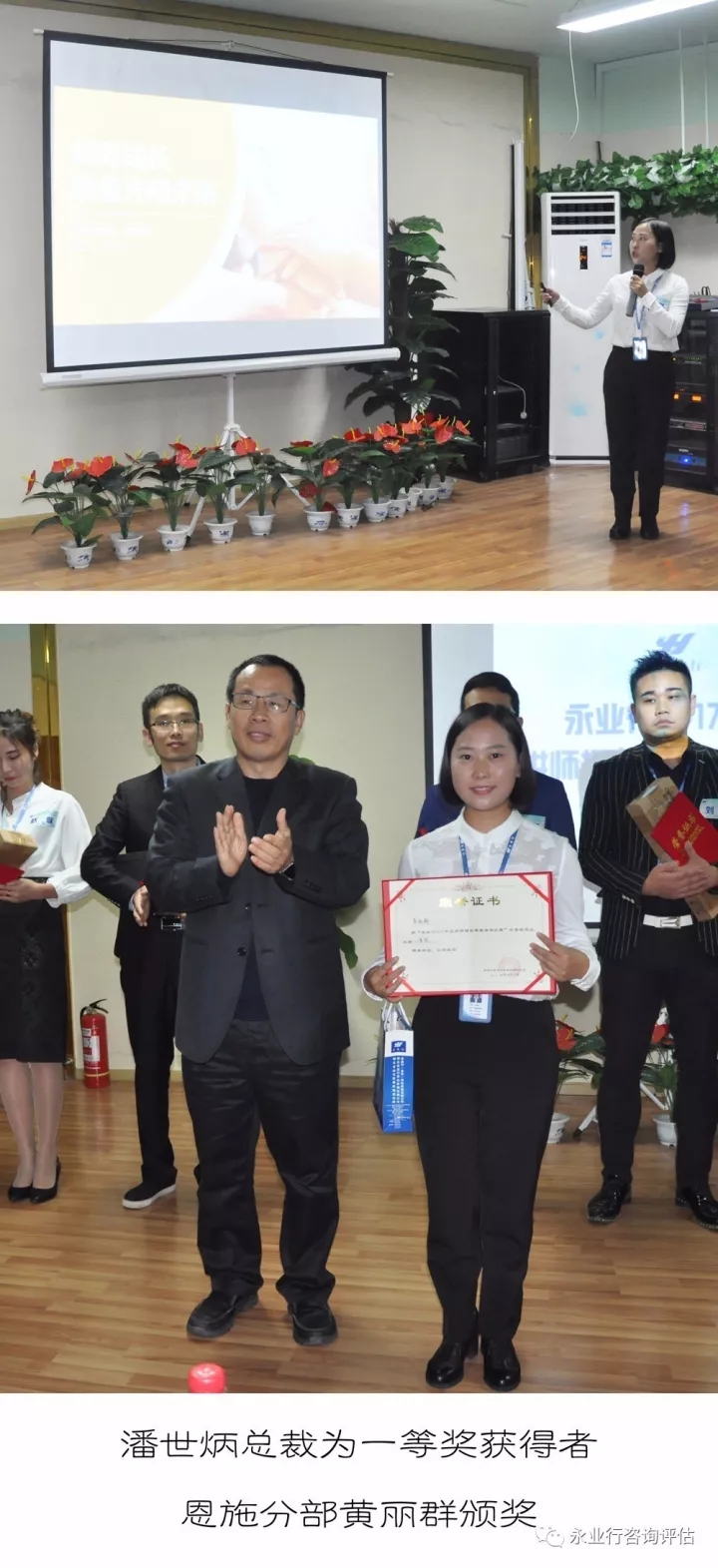 總裁潘世炳在點評中表示,演講比賽作為永業(yè)行傳統(tǒng)型活動,旨在廣開言路、發(fā)掘人才,為永業(yè)行青年員工提供展示才能、提升自我的平臺。為更進一步充實永業(yè)行學院講師庫,永業(yè)行在演講比賽基礎上創(chuàng)新開展了講師擂臺賽,各位參賽選手結合各自深耕的專業(yè),迸發(fā)出許多創(chuàng)新思維,提出了很多有利于永業(yè)行業(yè)務發(fā)展的建設性思路。希望各參賽選手以此為平臺,相互學習、交流,在今后的工作中創(chuàng)造出更大的業(yè)績。