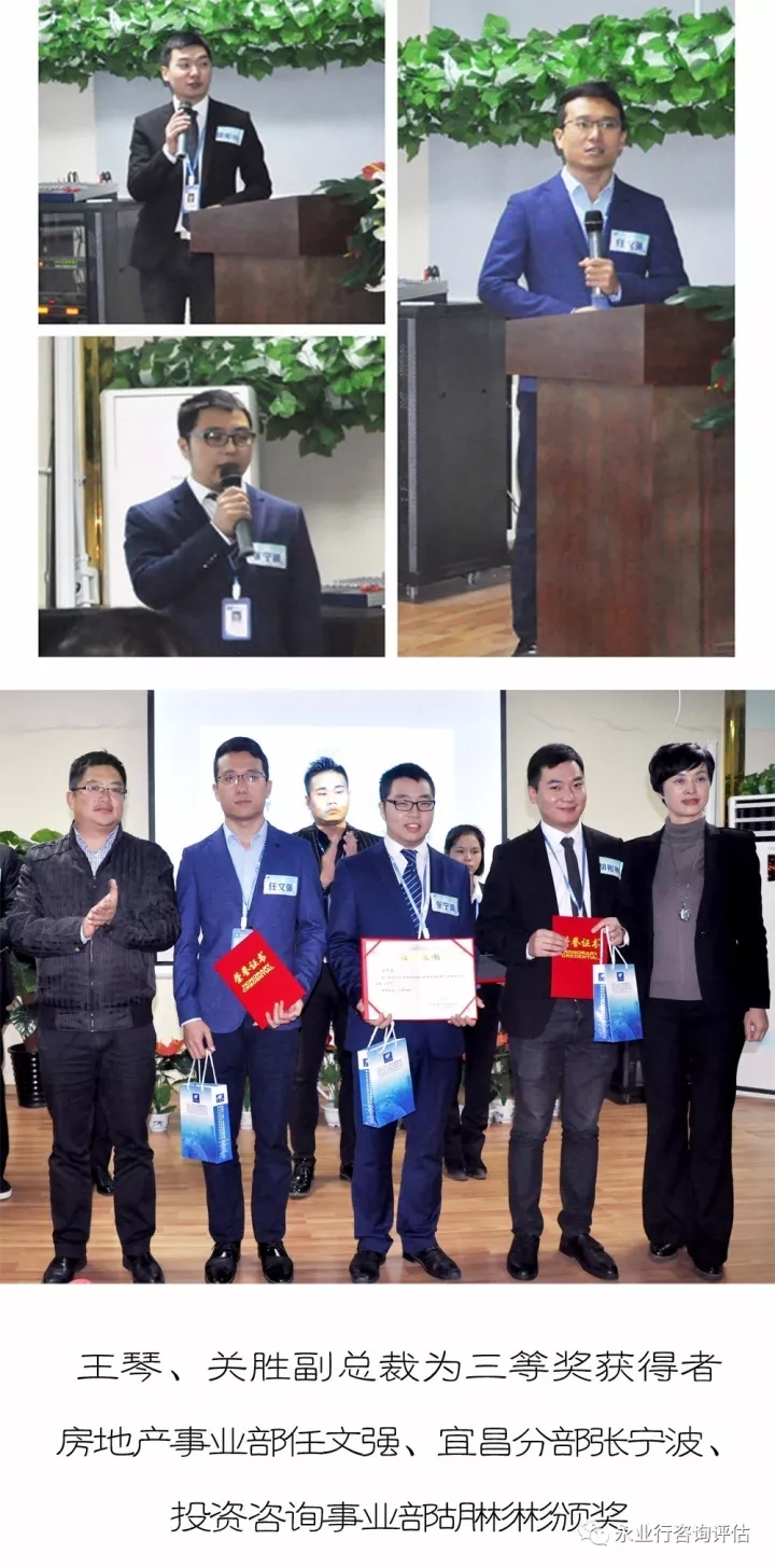 恩施分部的黃麗群從企業(yè)與員工之間的關系出發(fā),深入淺出地闡述了企業(yè)與員工共同成長,創(chuàng)造光明未來;投資咨詢事業(yè)部的趙咪、房地產事業(yè)部的任文強、環(huán)境事業(yè)部的劉兵分別結合工程造價、房地產評估報告、環(huán)境新業(yè)務的發(fā)展等內容進行了精彩分享;地產顧問事業(yè)部的劉超圍繞自己多年的市場營銷經驗,闡述了一位具有影響力的銷售員必備的心態(tài)與素質,整場比賽掌聲不斷,充分展示了永業(yè)行青年良好的精神風貌。