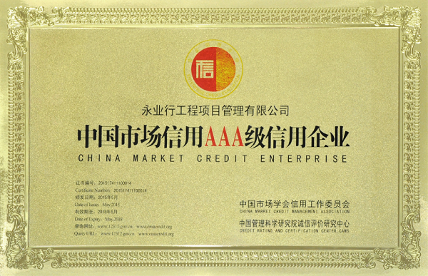 中國(guó)市場(chǎng)信用AAA級(jí)信用企業(yè)—永業(yè)行工程項(xiàng)目管理有限公司