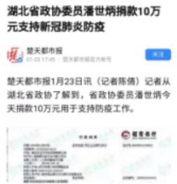 1月26日,潘世炳以湖北省房地產(chǎn)業(yè)協(xié)會會長、省新聯(lián)會副會長兼社會組織分會會長身份,向行業(yè)同仁發(fā)起倡議,號召廣大會員捐款捐物,向社會各界征集防護(hù)物資采購渠道。業(yè)內(nèi)企業(yè)、有關(guān)社會組織同聲響應(yīng),慷慨解囊,捐款捐物(含總部)總額超過10億元,捐贈各類醫(yī)護(hù)用品等價值2491萬元。