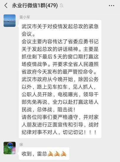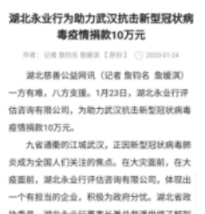 1月23日,臘月二十九日。凌晨兩點(diǎn),一條前所未有的通告,讓潘世炳一夜未眠?!皬?3日10時起,暫時關(guān)閉室內(nèi)公共交通以及航空和鐵路的離漢通道?!边@條信息讓潘世炳意識到,這場沒有硝煙的“戰(zhàn)爭”正在全面升級。天一亮,他便召集永業(yè)行高管召開視頻會議,親自擔(dān)任疫情防控工作領(lǐng)導(dǎo)小組組長,圍繞抗疫捐助、疫情防控、員工健康監(jiān)測、信息排摸、工資發(fā)放及困難員工救助等進(jìn)行專題研究。23日下午4時,永業(yè)行捐贈的10萬元新冠肺炎疫情防控??钷D(zhuǎn)入武漢市青少年發(fā)展基金會賬戶,成為疫情發(fā)生后國內(nèi)首家捐贈的專業(yè)服務(wù)機(jī)構(gòu),多家媒體宣傳報道。