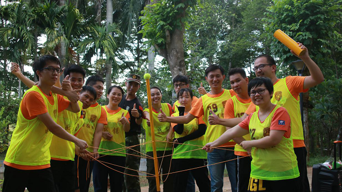 首先,教練向大家講解了戶外拓展活動的活動精神及具體規(guī)則,并以輕松有趣的熱身方式對全體人員進行分組。本次活動團隊分為三組(破冰隊、無敵隊、野狼隊),各團隊通過集體討論,分別制定了口號、隊歌,繪制隊旗,并逐一展示團隊風(fēng)采。隨后在教練的指導(dǎo)下,各組隊員相互配合、團結(jié)協(xié)作,共同完成了“無軌列車”、“極速60秒”、“水漲船高”、“穿越電網(wǎng)”等一系列激發(fā)團隊潛能、熔煉團隊智慧的拓展項目,以及CS鐳戰(zhàn)、射箭對戰(zhàn)等團隊競技活動。