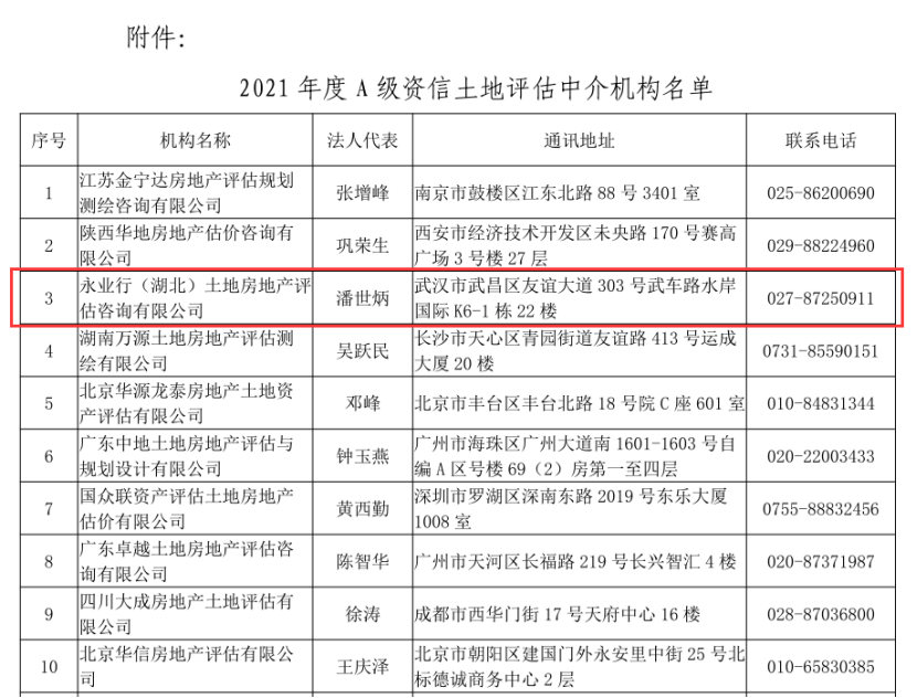 近日, 中國土地估價(jià)師與土地登記代理人協(xié)會(huì)(下稱“中估協(xié)”)發(fā)布“2021年度A級(jí)資信土地評估中介機(jī)構(gòu)”名單,永業(yè)行再次入選,連續(xù)13年獲得“A級(jí)資信土地評估中介機(jī)構(gòu)”稱號(hào)。