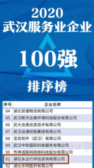 榮登“2020年武漢服務(wù)業(yè)企業(yè)100強(qiáng)”榜單