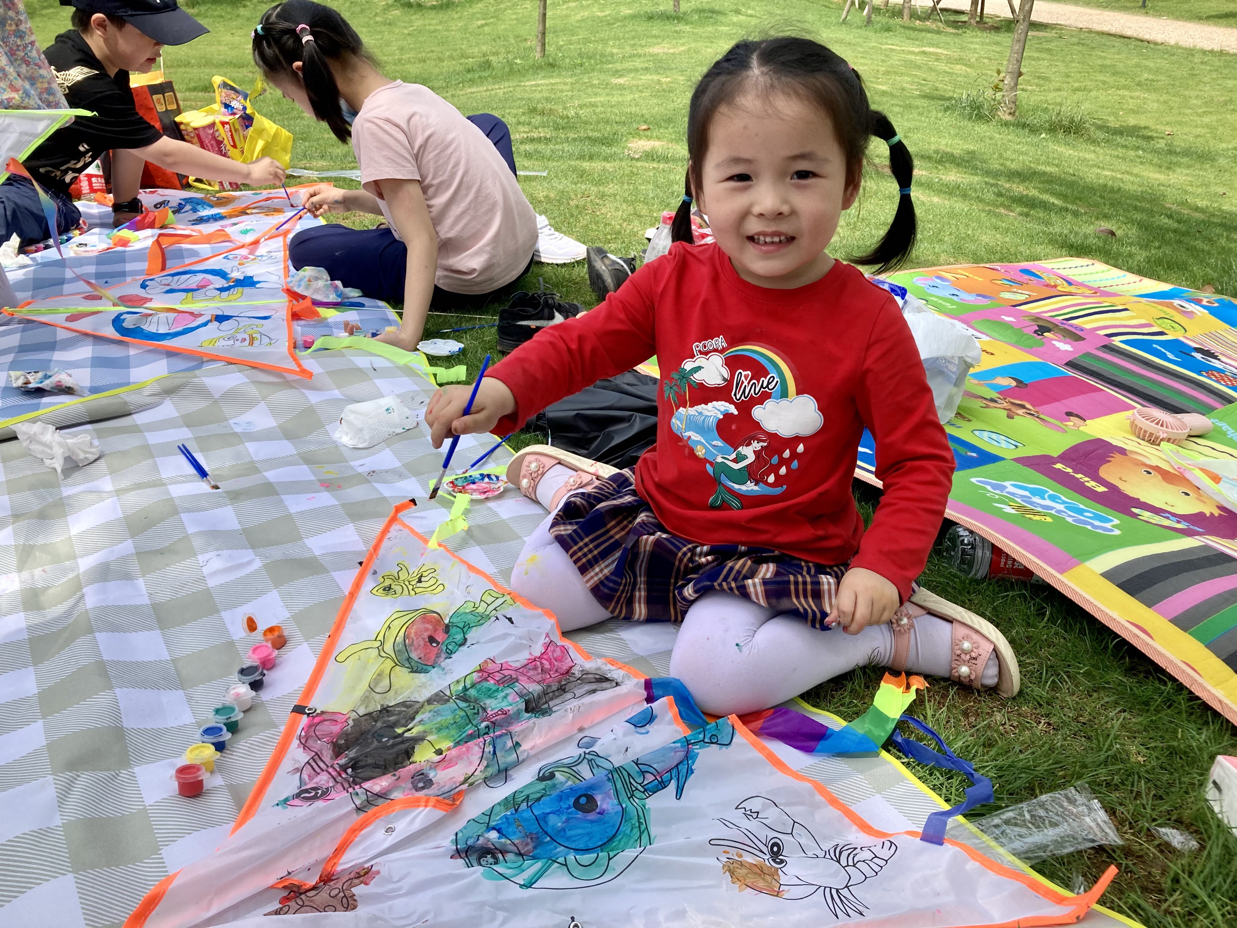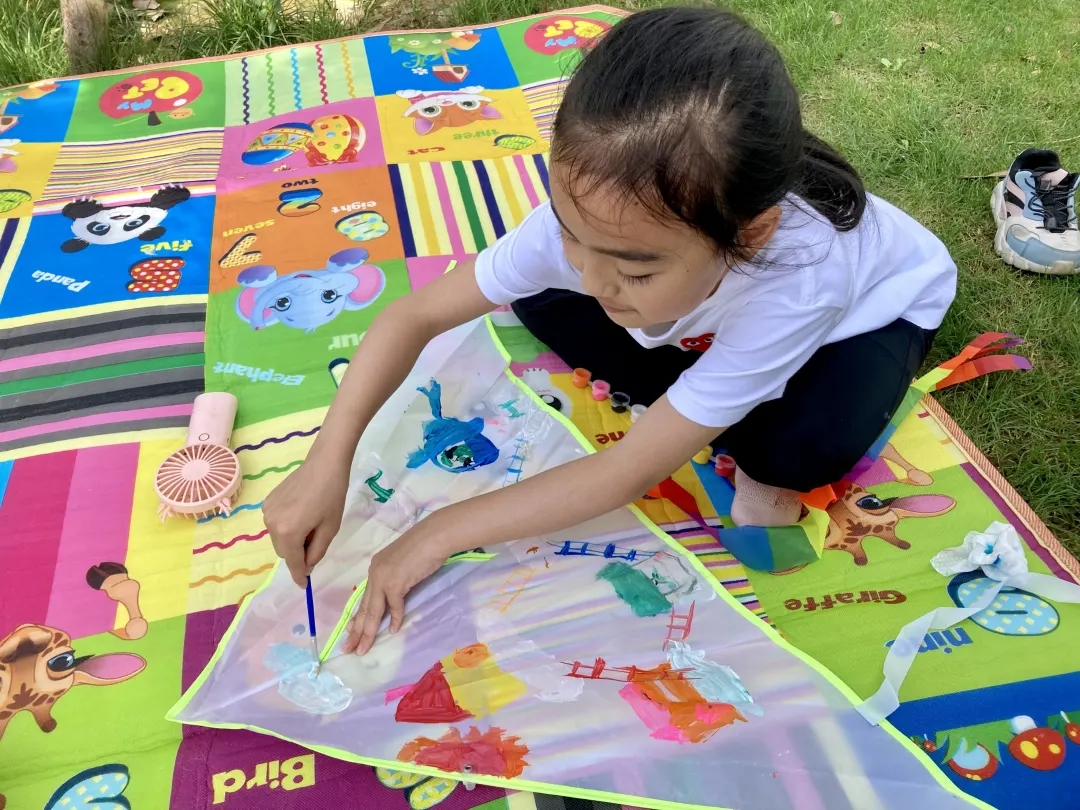 本次活動在親子風(fēng)箏DIY中溫情啟幕。孩子們在與家長的互動中,用五顏六色的畫筆認(rèn)真涂畫,讓心中的色彩躍然風(fēng)箏之上,一筆一畫勾勒出的是獨(dú)一無二的風(fēng)箏,也是初夏里難忘的親子時光。逐漸升高的氣溫并沒有阻擋孩子們的熱情。風(fēng)箏繪制好后,孩子們迫不及待的拉著家長開始放風(fēng)箏,奔跑的孩子,歡呼雀躍,可愛至極。家長們也仿佛回到了童年時代,活動中充滿了歡聲笑語!
