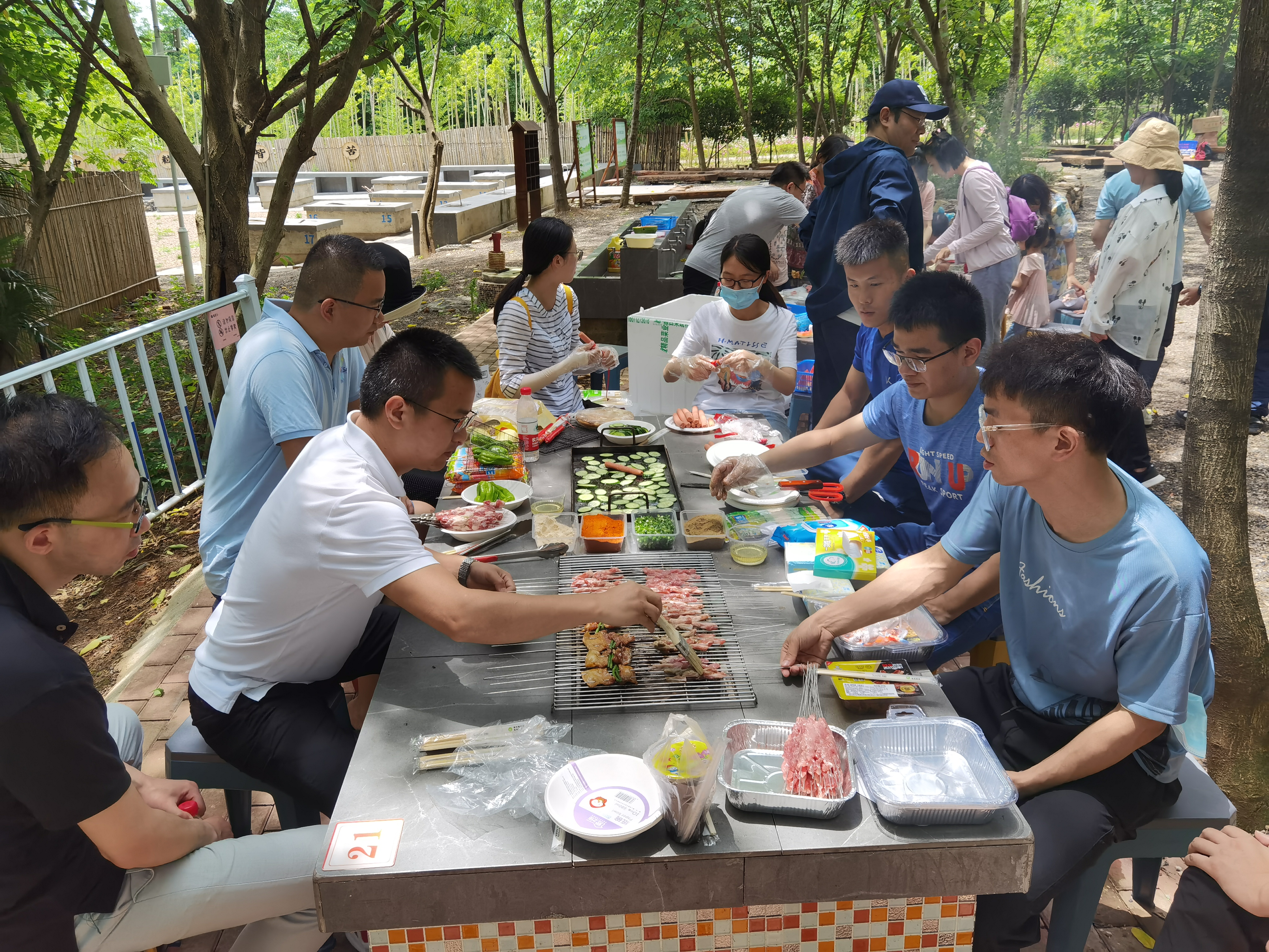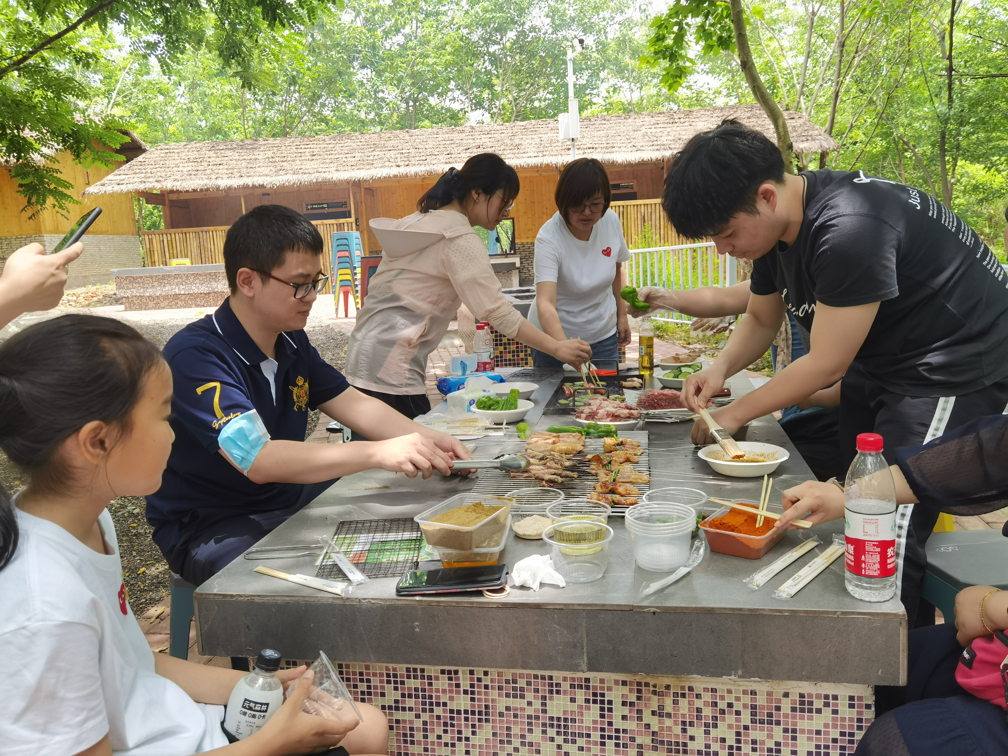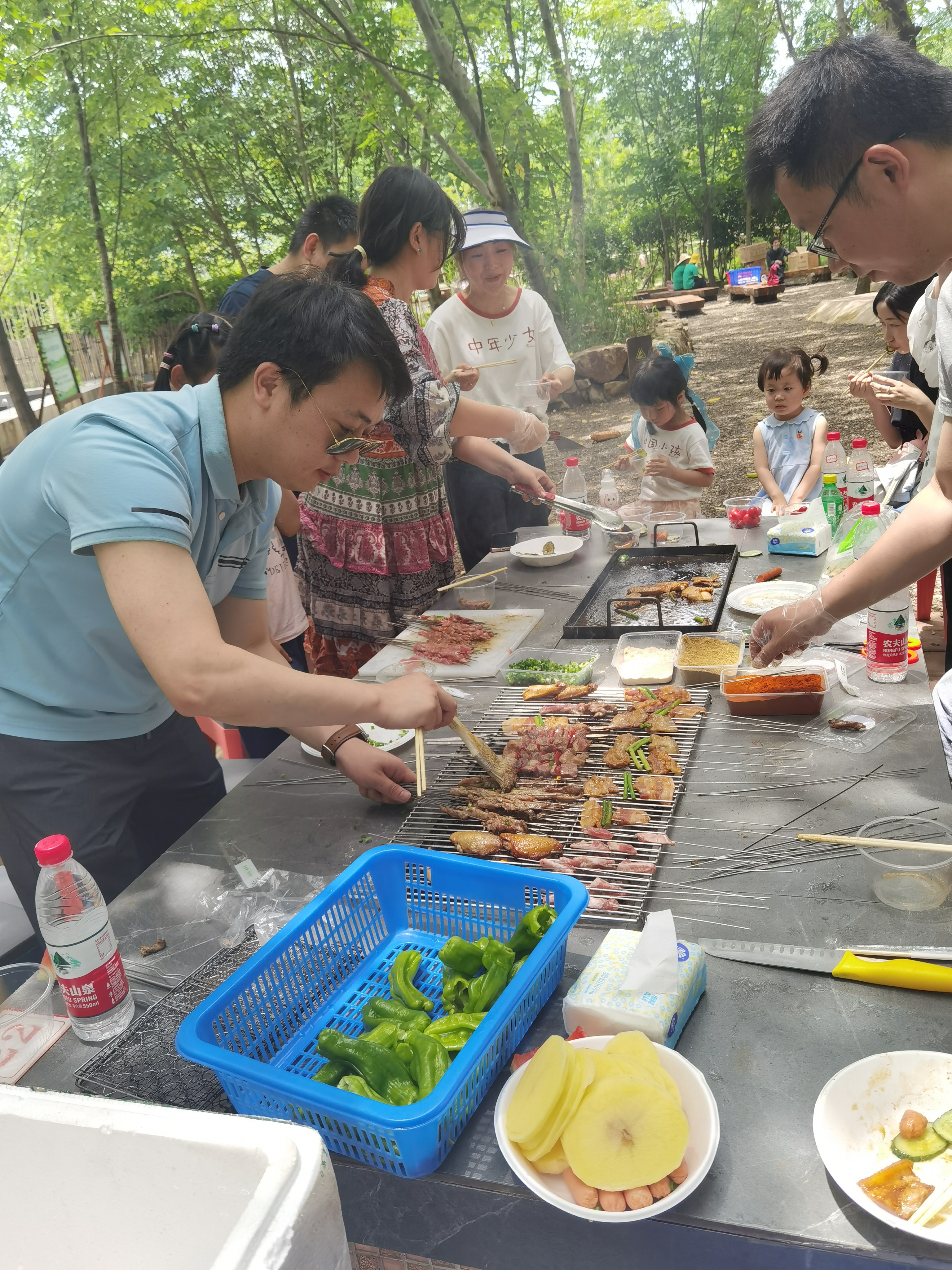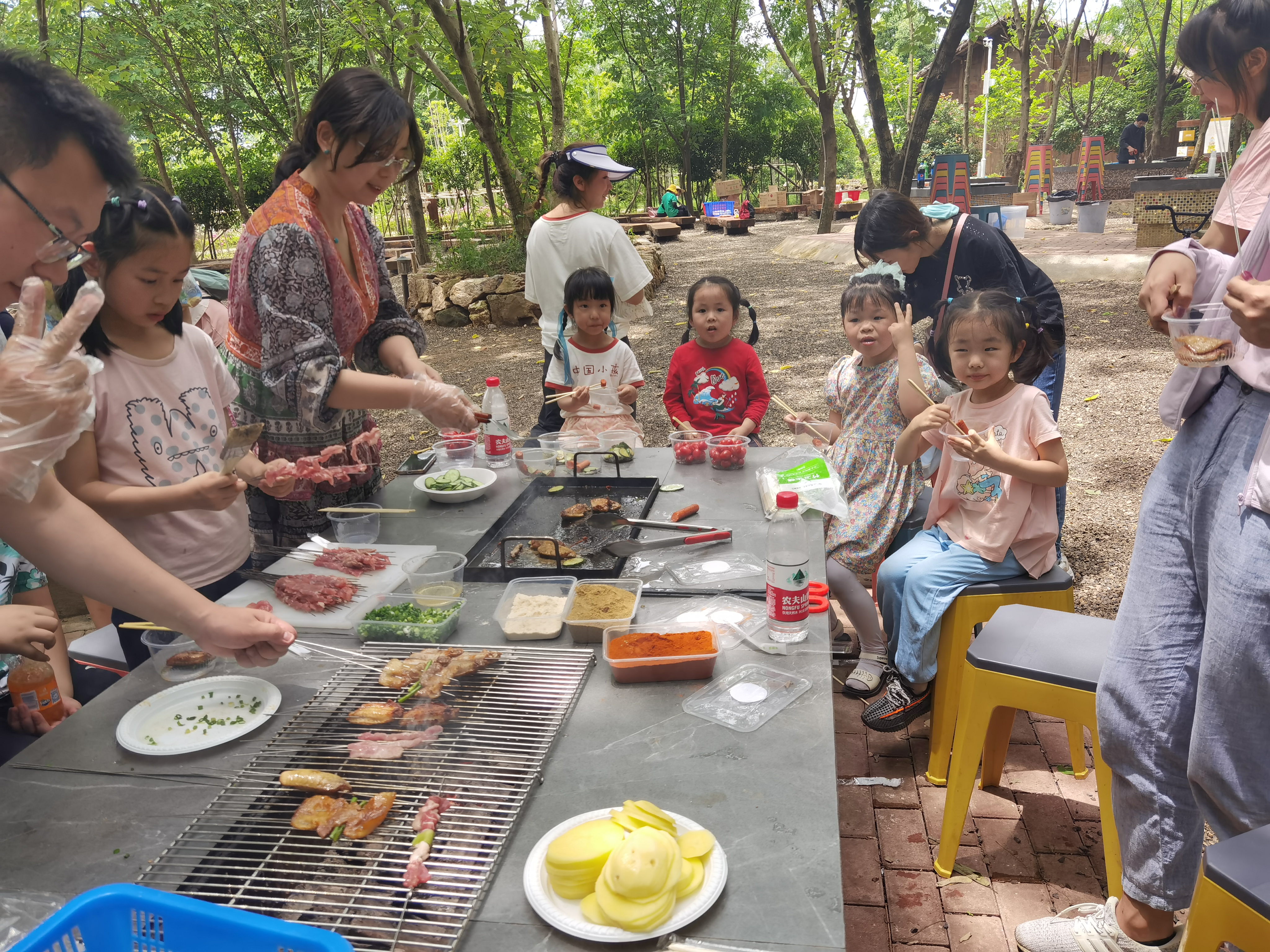 半天行程過后,在孩子們充滿快樂和期盼的眼神中,燒烤活動正式開始。在家長們的幫助下,孩子們配合默契,一個個化身成“勞動小能手”,架爐子、涮調(diào)料、擺桌子、串食材,一時間熱火朝天,大家忙得不亦樂乎卻有條不紊。大小朋友們圍坐在一起,吃著烤串,閑話家常,開懷大笑,各種美味香氣縈繞在空氣中,場面熱鬧而歡快!
