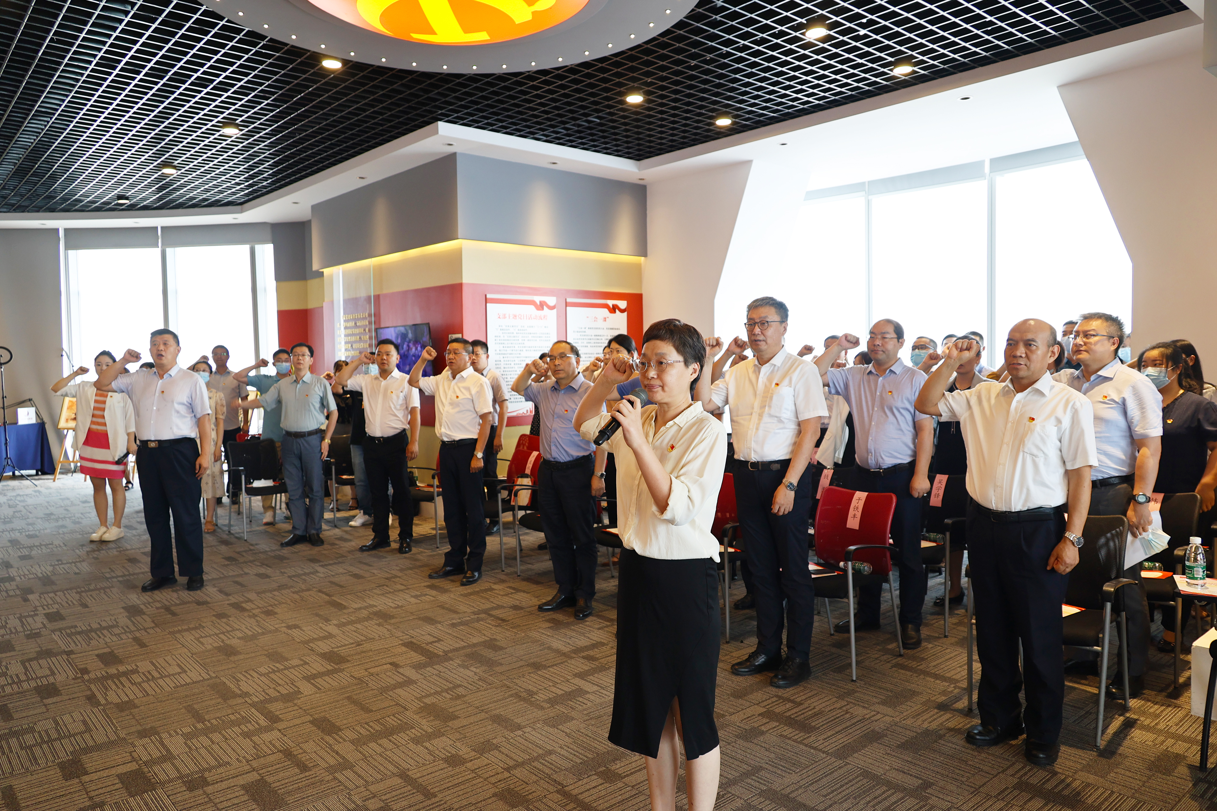 活動由徐家棚街道工委書記、一級調(diào)研員、武昌濱江高端商務(wù)集聚區(qū)綜合黨委書記劉曉明主持?;顒娱_始,由武昌區(qū)企業(yè)和人才服務(wù)中心黨組書記、主任楊蓉領(lǐng)誓,與會人員集體重溫入黨誓詞。武漢中共中央機(jī)關(guān)舊址紀(jì)念館副館長、武漢市黨史宣講團(tuán)成員周靜以《辦好中國的事情關(guān)鍵在黨》為主題,開講特色黨課。隨后,與會人員觀看黨史宣傳片《建黨百年 武昌故事》第12集《珞珈紅脈——周恩來在珞珈山》,4名青年黨員深情朗誦《紅船,從南湖起航》,回憶黨史、感念黨恩,歌頌美好新時代?;顒幼詈?,全體黨員齊聲合唱《沒有共產(chǎn)黨就沒有新中國》,用歌聲詮釋對黨的摯愛和祖國的贊美。