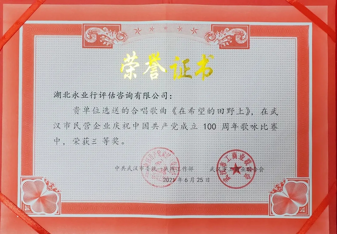 百年風(fēng)雨滄桑,百年壯麗輝煌,我們迎來(lái)了中國(guó)共產(chǎn)黨的百年華誕。6月25日下午,由武漢市委統(tǒng)戰(zhàn)部、市工商業(yè)聯(lián)合會(huì)舉辦的“武漢市民營(yíng)企業(yè)慶祝中國(guó)共產(chǎn)黨成立100周年歌唱比賽”在市青少年宮音樂(lè)廳隆重舉行。在武昌區(qū)工商聯(lián)會(huì)員企業(yè)黨委的推薦下,永業(yè)行合唱團(tuán)與來(lái)自全市各區(qū)工商聯(lián)、工商聯(lián)所屬商會(huì)、會(huì)員企業(yè)的15支隊(duì)伍縱情高歌,唱響紅色經(jīng)典。永業(yè)行合唱團(tuán)以飽滿的情緒深情獻(xiàn)唱的經(jīng)典歌曲《在希望的田野上》,以新穎的演唱形式、豐富的表演內(nèi)容得到了專(zhuān)家評(píng)委和現(xiàn)場(chǎng)觀眾的認(rèn)可,榮獲比賽三等獎(jiǎng)。