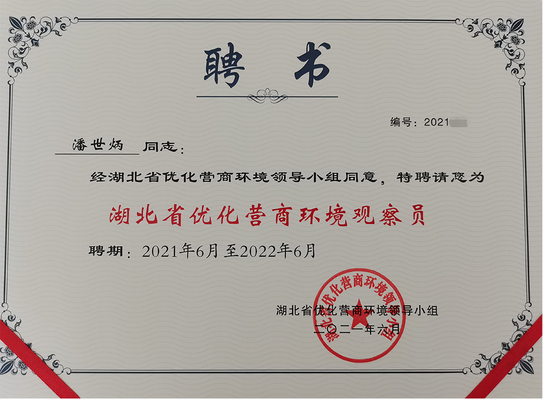 永業(yè)行潘世炳受聘為湖北省首批優(yōu)化營商環(huán)境觀察員