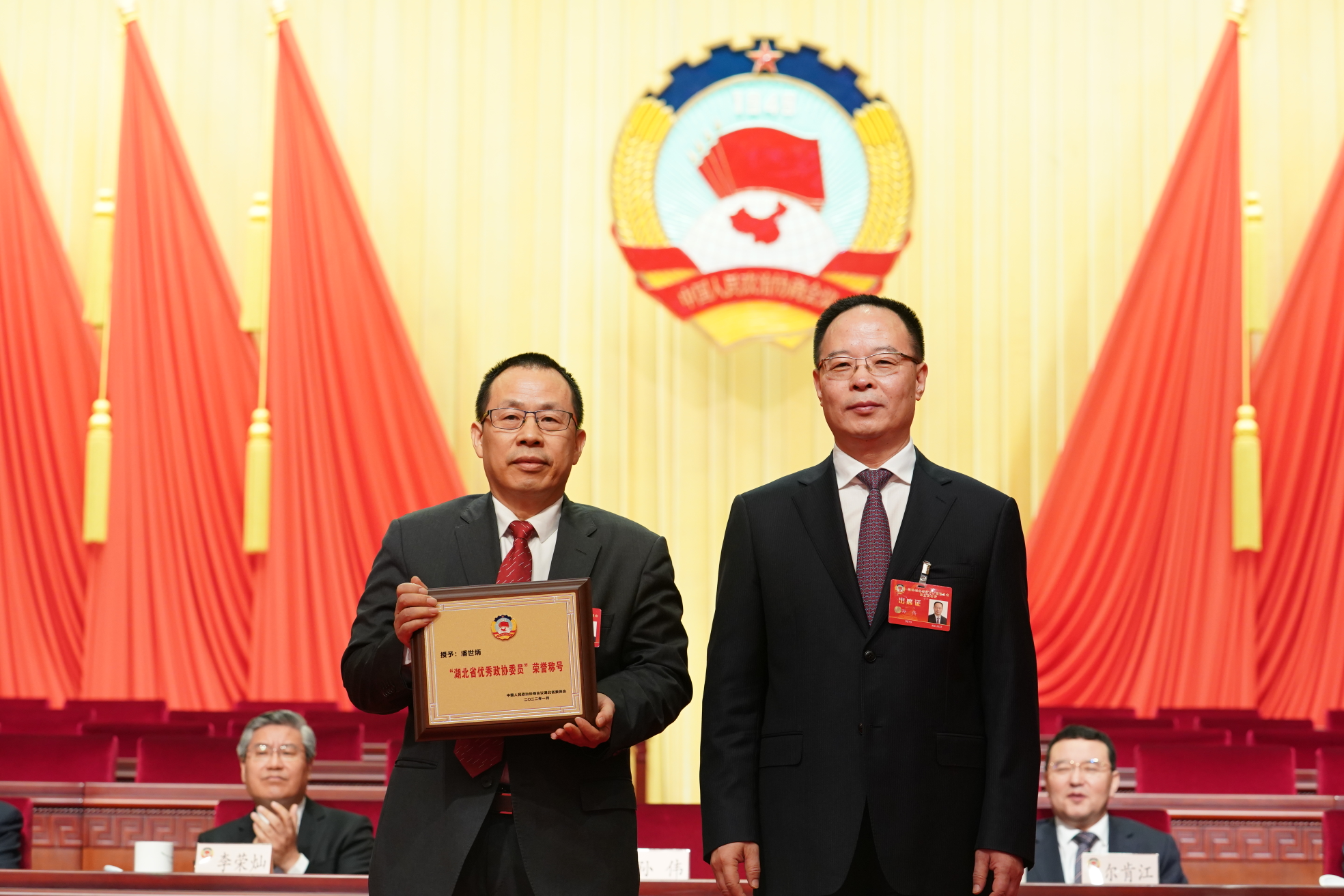 1月21日上午,湖北省政協(xié)十二屆五次會(huì)議舉行全體會(huì)議。省政協(xié)從全省20000余名各級(jí)政協(xié)委員中,評(píng)選出100名省優(yōu)秀政協(xié)委員,其中10名優(yōu)秀政協(xié)委員代表在大會(huì)現(xiàn)場(chǎng)予以表彰。省政協(xié)黨組書(shū)記孫偉為獲表彰委員頒獎(jiǎng)。省政協(xié)委員、永業(yè)行董事長(zhǎng)作為省優(yōu)秀政協(xié)委員代表上臺(tái)領(lǐng)獎(jiǎng)。此為潘世炳連續(xù)三屆(第十、十一、十二屆)獲評(píng)“湖北省優(yōu)秀政協(xié)委員”榮譽(yù)稱號(hào)。