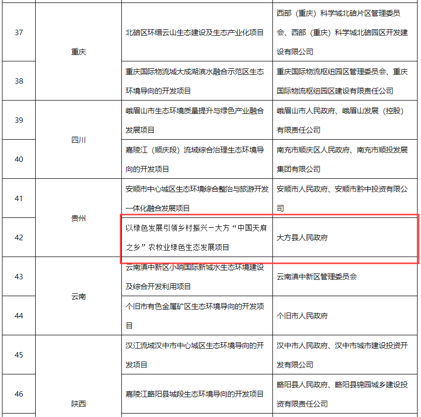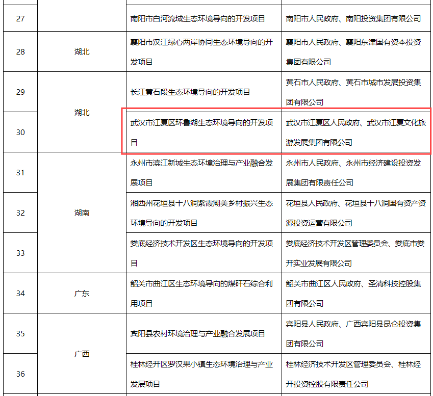 永業(yè)行承擔(dān)的貴州省以綠色發(fā)展引領(lǐng)鄉(xiāng)村振興—大方“中國(guó)天麻之鄉(xiāng)”農(nóng)牧業(yè)綠色生態(tài)發(fā)展項(xiàng)目、湖北省武漢市江夏區(qū)環(huán)魯湖生態(tài)環(huán)境導(dǎo)向的開(kāi)發(fā)項(xiàng)目入選,目前正在推動(dòng)多元化籌融資以及引入社會(huì)資本合作實(shí)施落地。受大方縣人民政府和武漢市江夏區(qū)人民政府委托,永業(yè)行提供了包括投融資策劃、EOD試點(diǎn)申報(bào)等咨詢服務(wù)。