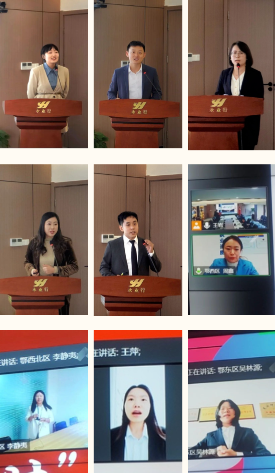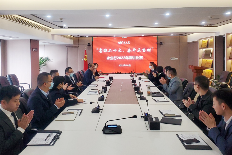 2022年10月10日,永業(yè)行“喜迎二十大,奮斗正當時”演講比賽在總部會議室隆重舉行。經(jīng)過預賽選拔,9名來自總、分部的參賽選手同臺競技。永業(yè)行黨委書記、董事長潘世炳,常務副總裁吳學鋒,副總裁程為民,總部各職能部門負責人、分部優(yōu)秀員工代表通過線上線下形式出席并擔任評委。本次演講比賽還特別邀請了黨建指導員郭群到達現(xiàn)場觀摩并指導工作。
