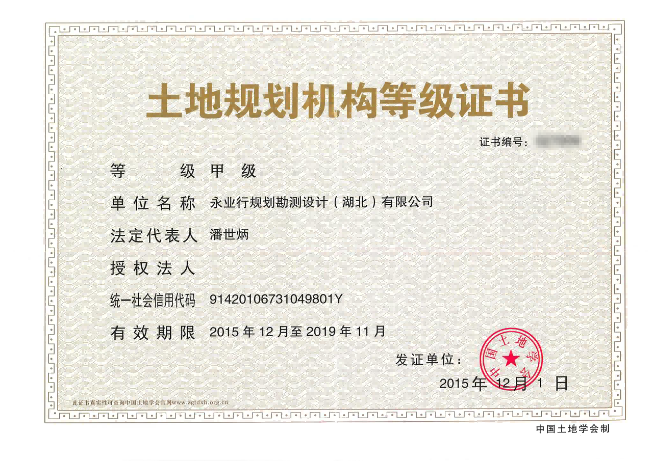 土地規(guī)劃機構(gòu)等級證書(甲級)