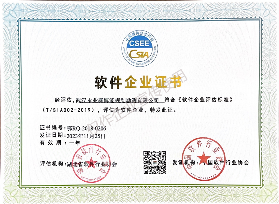 近日,中國(guó)軟件行業(yè)協(xié)會(huì)發(fā)布軟件企業(yè)復(fù)評(píng)結(jié)果,武漢永業(yè)賽博能規(guī)劃勘測(cè)有限公司軟件企業(yè)資質(zhì)成功通過(guò)復(fù)評(píng)。