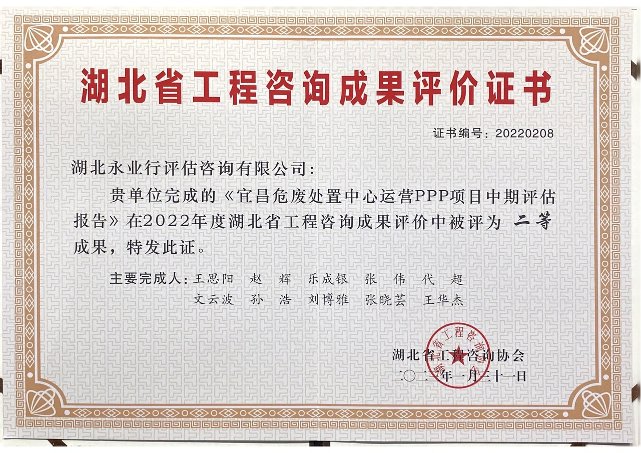 湖北省工程咨詢優(yōu)秀成果二等獎(jiǎng)
