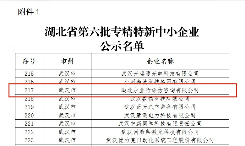 湖北省專精特新中小企業(yè)——永業(yè)行