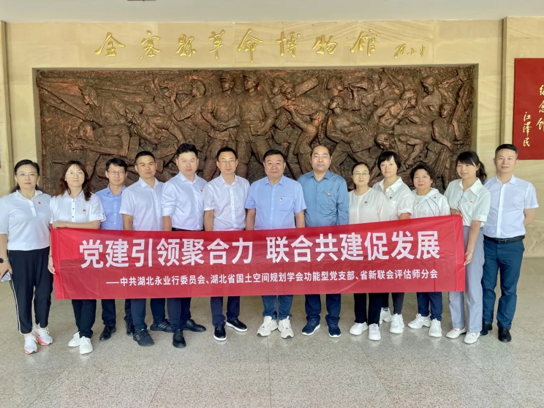 為持續(xù)加強(qiáng)黨史學(xué)習(xí)教育,厚植愛國(guó)主義情懷,2024年5月17日,中共湖北永業(yè)行委員會(huì)聯(lián)合湖北省國(guó)土空間規(guī)劃學(xué)會(huì)、省新聯(lián)會(huì)評(píng)估師分會(huì)赴安徽省金寨縣金寨革命博物館開展“黨建引領(lǐng)聚合力 聯(lián)合共建促發(fā)展”主題黨日活動(dòng)。湖北省國(guó)土空間規(guī)劃學(xué)會(huì)常務(wù)副理事長(zhǎng)余軍,省新聯(lián)會(huì)評(píng)估師分會(huì)秘書長(zhǎng)、中共湖北永業(yè)行黨委委員、永業(yè)行常務(wù)副總裁吳學(xué)鋒,民進(jìn)湖北永業(yè)行支部主委、永業(yè)行副總裁金建華等參加此次活動(dòng)。
