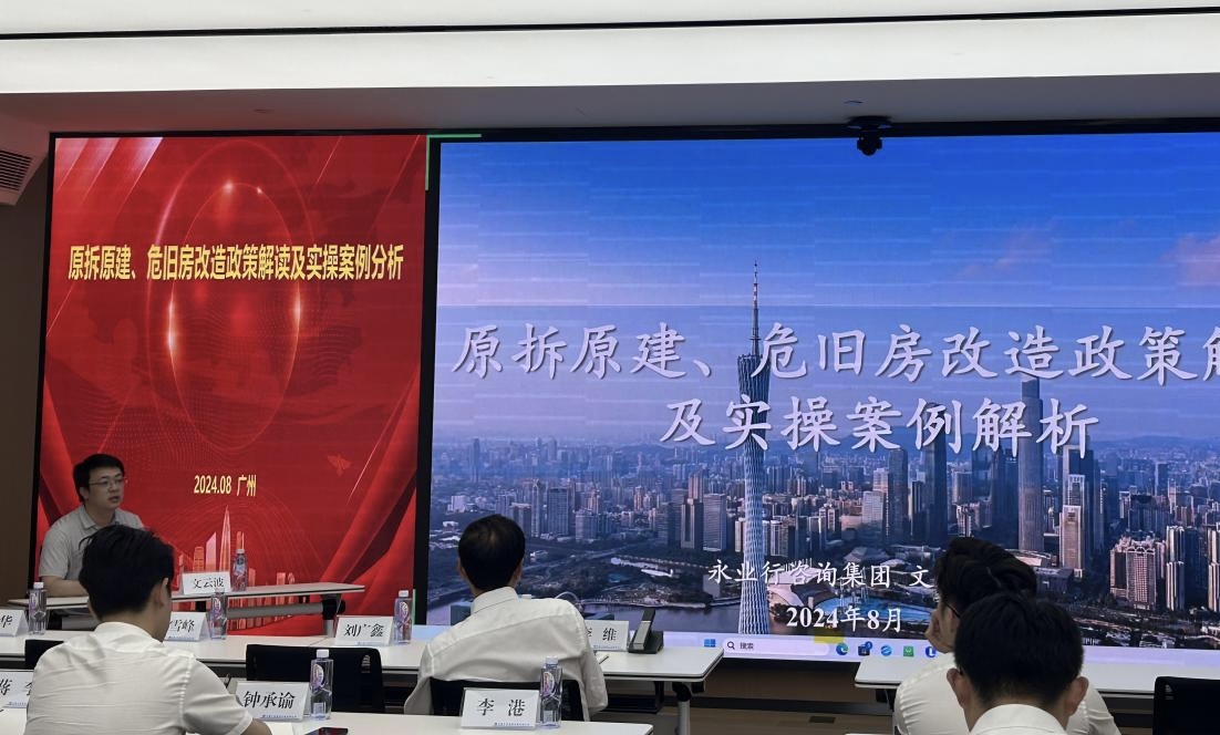 2024年8月12日,中建三局集團(tuán)華南有限公司組織召開2024年第三期“華南投資課堂”專題培訓(xùn),中建三局華南公司副總經(jīng)理李維出席會(huì)議。永業(yè)行高級(jí)副總裁文云波受邀作原拆原建、危舊房改造政策及實(shí)操案例解析培訓(xùn)交流。