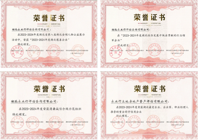 永業(yè)行榮獲2023-2024年度湖北慈善企業(yè)、2023-2024年度行業(yè)領(lǐng)軍企業(yè)、2023-2024年度清廉誠(chéng)信合規(guī)示范組織、2023-2024年度最受企業(yè)、企業(yè)家、職業(yè)經(jīng)理人推崇的重合同守信用企業(yè)等多項(xiàng)榮譽(yù)。