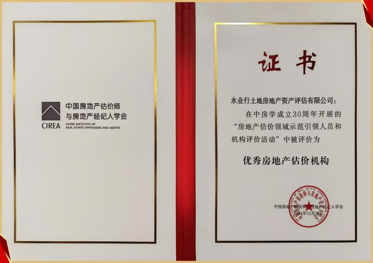 在“房地產(chǎn)估價領(lǐng)域示范引領(lǐng)人員和機構(gòu)評價活動”中,永業(yè)行憑借穩(wěn)健經(jīng)營、專業(yè)服務(wù)、創(chuàng)新發(fā)展以及履行企業(yè)社會責(zé)任等多方面的杰出表現(xiàn),贏得了行業(yè)認(rèn)可,榮獲 “優(yōu)秀房地產(chǎn)估價機構(gòu)” 稱號,有力地彰顯了公司在行業(yè)內(nèi)的領(lǐng)先地位和品牌影響力。