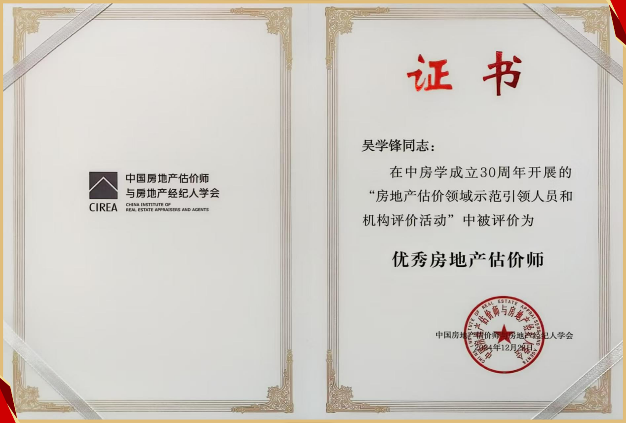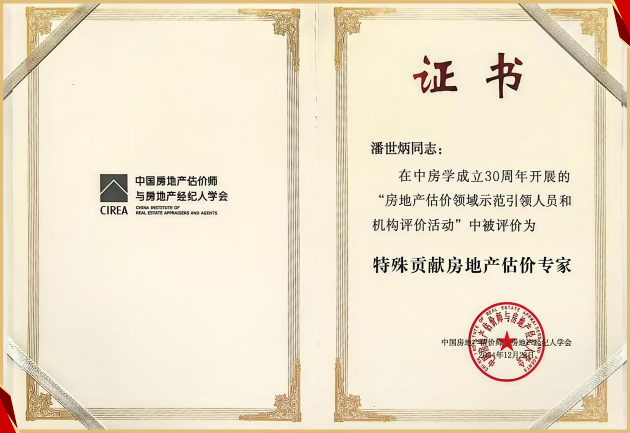 憑借自身的專業(yè)能力和卓越貢獻(xiàn),永業(yè)行黨委書記、董事長潘世炳被評為 “特殊貢獻(xiàn)房地產(chǎn)估價專家”,常務(wù)副總裁吳學(xué)鋒獲評 “優(yōu)秀房地產(chǎn)估價師”。