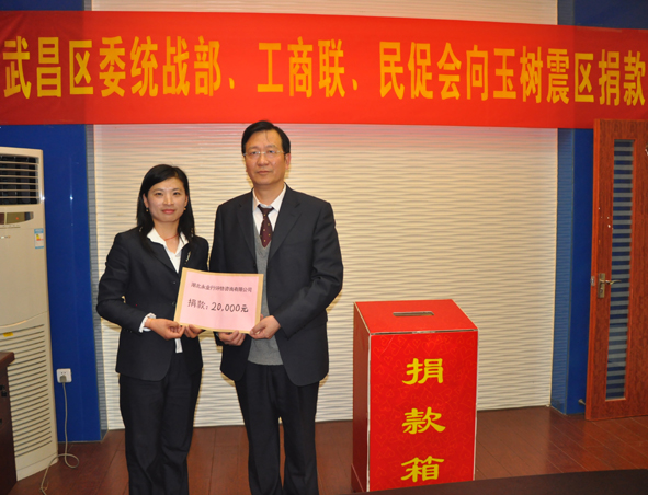 4月27日下午,武昌區(qū)委統(tǒng)戰(zhàn)部、工商聯(lián)、民促會向玉樹災(zāi)區(qū)捐款活動在武昌慈善總會舉行。永業(yè)行副總裁、黨委副書記靳劍輝代表公司全體員工將捐款交給武昌慈善總會,為玉樹奉上一片愛心。