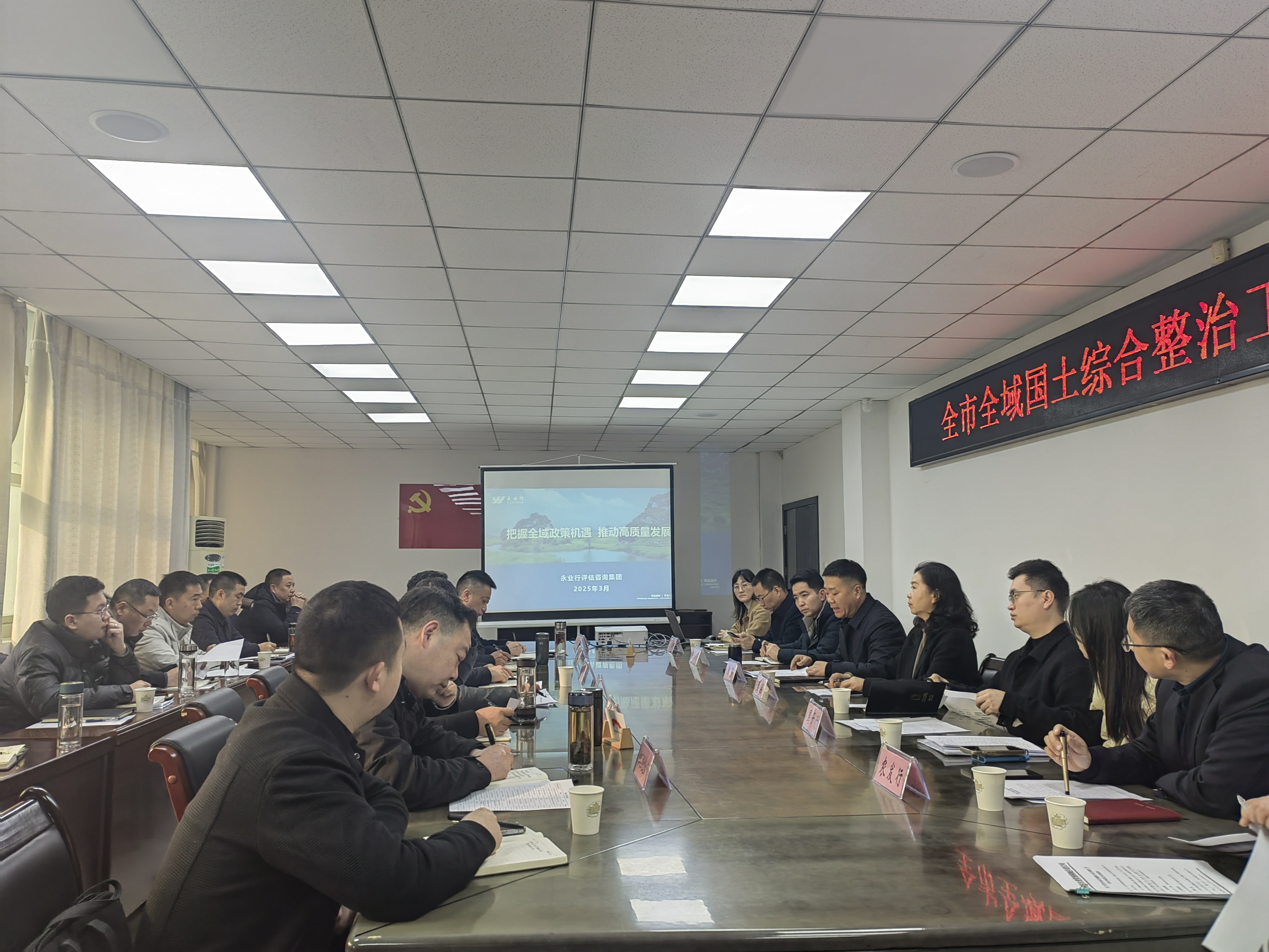 隨州市自建局相關(guān)業(yè)務(wù)科室,各縣(市、區(qū))局分管領(lǐng)導(dǎo)以及全市國土整治機(jī)構(gòu)主要負(fù)責(zé)人,金融機(jī)構(gòu)、相關(guān)平臺公司等代表;永業(yè)行資源環(huán)境事業(yè)群市場總監(jiān)閆娟、區(qū)域副總監(jiān)周靜等參加會議。