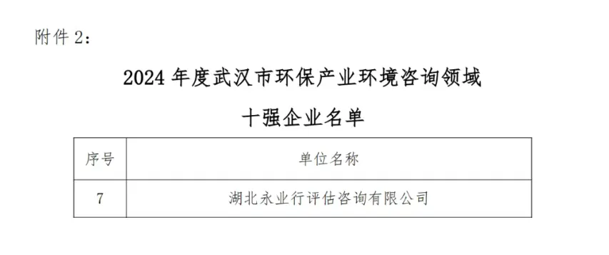 永業(yè)行入選2024武漢環(huán)保產(chǎn)業(yè)百強及環(huán)保咨詢十強