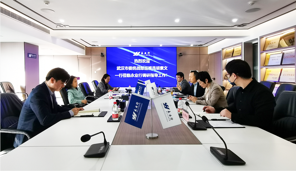 2022年4月21日,武漢市委統(tǒng)戰(zhàn)部巡視員胡素文、市委統(tǒng)戰(zhàn)部知工處(新階層處)處長陳茉、副處長袁朝一行蒞臨永業(yè)行,走訪看望永業(yè)行新的社會階層人士。省政協(xié)委員、省新聯(lián)會副會長、市新聯(lián)會名譽會長、永業(yè)行董事長潘世炳,市政協(xié)委員、市新聯(lián)會副會長、永業(yè)行輪值總裁王琴,武昌區(qū)人大代表、永業(yè)行副總裁文云波參加座談。
