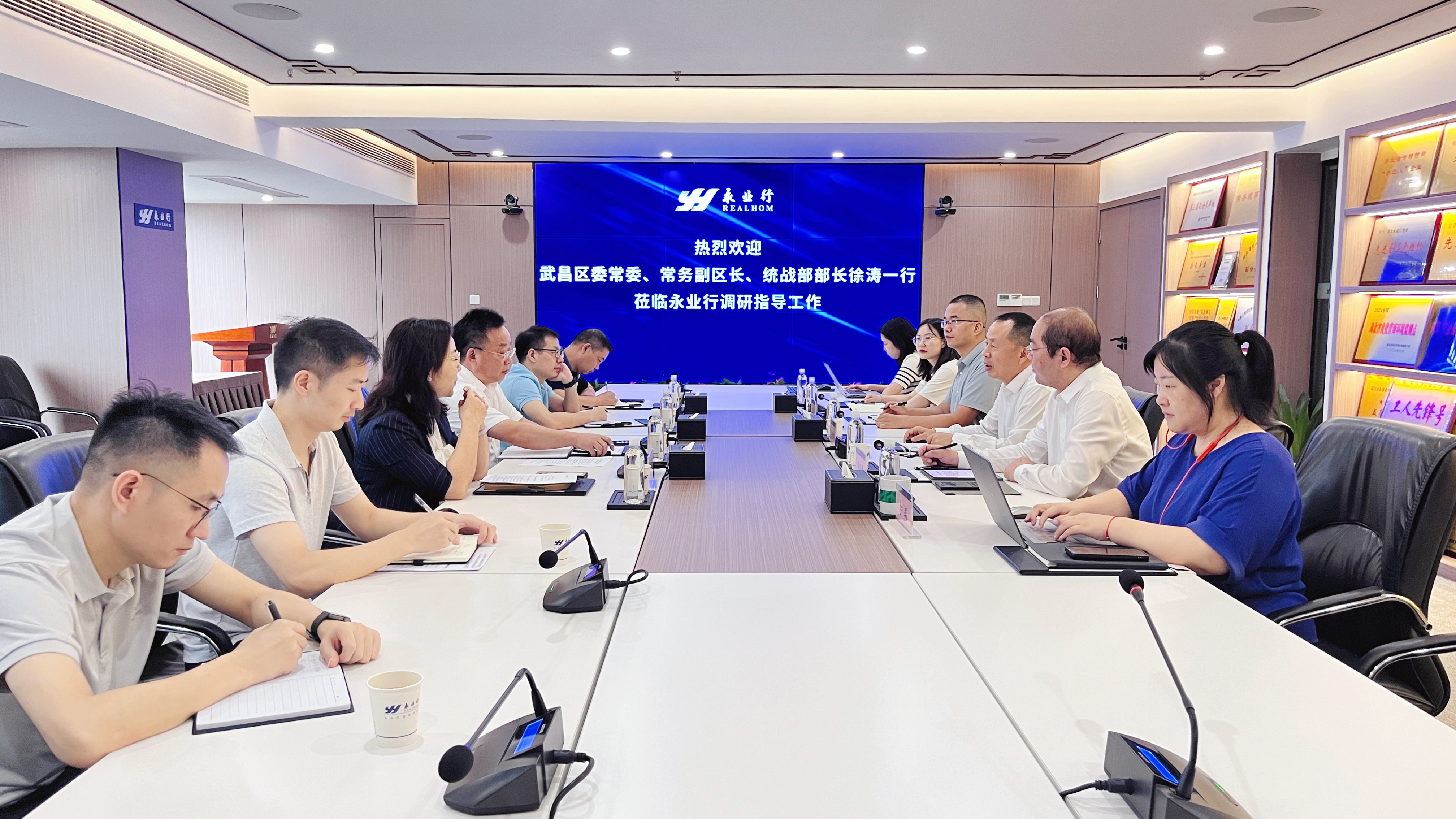 2024年9月12日,武昌區(qū)委常委、常務(wù)副區(qū)長(zhǎng)、統(tǒng)戰(zhàn)部部長(zhǎng)徐濤一行蒞臨永業(yè)行調(diào)研指導(dǎo)工作,就企業(yè)發(fā)展情況座談交流。永業(yè)行黨委書記、董事長(zhǎng)潘世炳,常務(wù)副總裁吳學(xué)鋒等熱情接待并參加座談交流。