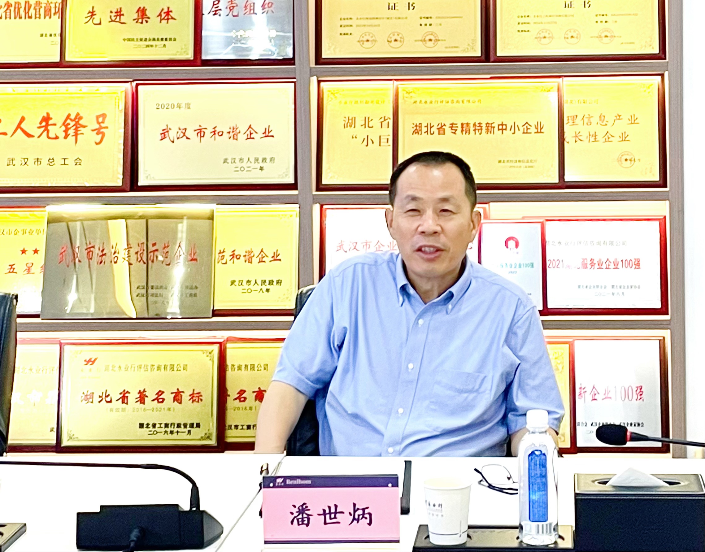 潘世炳對潘家華教授的到來表示熱烈歡迎,介紹了公司的發(fā)展歷程、資質(zhì)榮譽(yù)、業(yè)務(wù)布局、創(chuàng)新研發(fā)等方面的情況。他表示,公司始終以國家戰(zhàn)略為導(dǎo)向,在資源環(huán)境優(yōu)化、生態(tài)環(huán)保治理、綠色金融創(chuàng)新、零碳園區(qū)建設(shè)等領(lǐng)域深耕細(xì)作,通過技術(shù)創(chuàng)新與模式探索,為政府部門和企業(yè)提供高質(zhì)量服務(wù),為推動(dòng)綠色轉(zhuǎn)型、服務(wù)支點(diǎn)建設(shè)、共建美麗湖北貢獻(xiàn)永業(yè)行的智慧與力量。