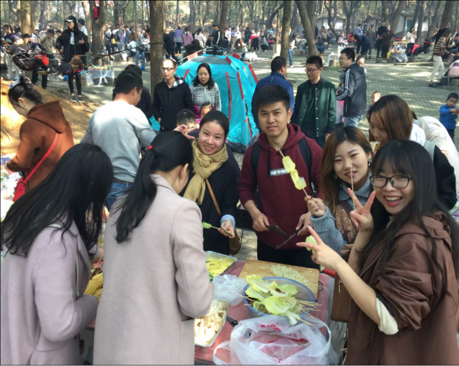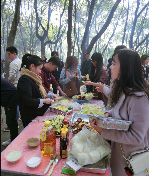 在燒烤活動現(xiàn)場,大家拿出提前準(zhǔn)備好的食材,分工合作,體驗了“自己動手、豐衣足食”的樂趣。在制作和分享美味的過程中,工作的壓力得到了釋放、同事間的感情得到了交流。大家烤得熱火朝天,吃得不亦樂乎!歡聲笑語連成片,其樂融融,充分體驗了野外集體生活的樂趣。