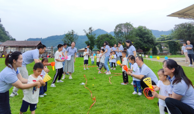 活動伊始,永業(yè)行副總裁兼鄂西區(qū)總經理雷小明向小朋友們致以節(jié)日的問候,向到場的員工家屬表示誠摯感謝?;顒訉⑿∨笥褌兎譃閮山M,家長及孩子們在默契配合下完成了瘋狂接力棒、套圈圈、拋接彈射球、瘋狂踩氣球等游戲,整個過程充滿童真,孩子們臉上洋溢著燦爛的笑容與樂園的童趣融為一體,在陽光的照耀下格外靚麗。