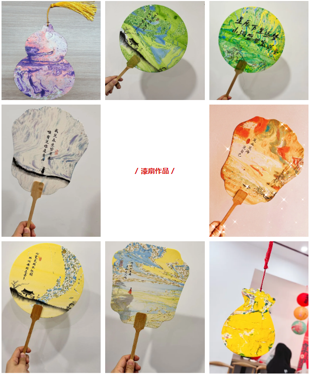 一扇一世界,一扇一故事。漆扇,它以獨(dú)特的藝術(shù)形態(tài),詮釋著東方美學(xué)的神韻,演繹著中國(guó)傳統(tǒng)文化的深厚內(nèi)涵?;锇閭儼l(fā)揮創(chuàng)意,紛紛動(dòng)手制作自己的漆扇,用五顏六色的顏料繪制出各自心中獨(dú)一無(wú)二的圖案,既感受到了傳統(tǒng)工藝的魅力,又體驗(yàn)了親手制作的樂(lè)趣。
