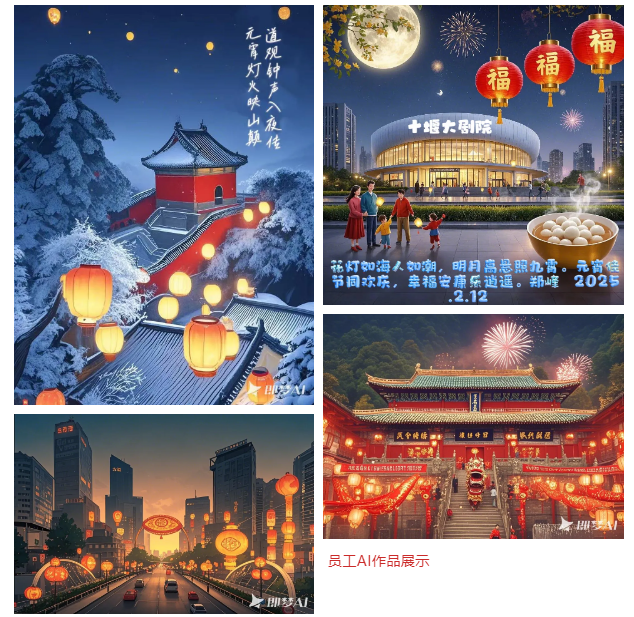 十堰分部在辦公室舉辦“元宵共慶,歡樂(lè)團(tuán)圓”主題活動(dòng),以手工制作和AI工具展開(kāi),通過(guò)親手制作兔子燈和金魚燈,增強(qiáng)了員工的動(dòng)手能力和團(tuán)隊(duì)協(xié)作能力。同時(shí),為跟進(jìn)人工智能技術(shù)的快速發(fā)展,鼓勵(lì)員工熟悉和快速適應(yīng)AI工具,十堰分部還組織員工結(jié)合十堰市地標(biāo)建筑用AI工具制作元宵節(jié)祝福畫作,青年員工們大顯身手,制作出各種精美的節(jié)日畫作,豐富了員工的業(yè)余生活,提高了員工工作積極性和創(chuàng)造力,營(yíng)造了和諧的工作氛圍,讓每位員工都能感受到節(jié)日的歡樂(lè)和團(tuán)圓的氛圍。