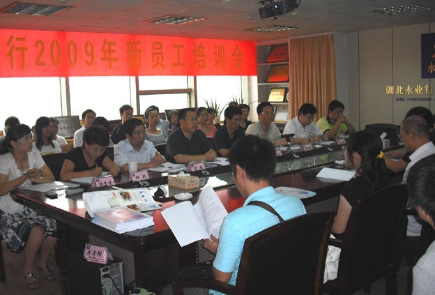 7月5日,2009年永業(yè)行新員工培訓(xùn)在公司會議室召開,董事長方國成,總裁潘世炳,副總裁靳劍輝、高軍、李翔,助理總裁肖鋒出席了培訓(xùn)活動,40多名新員工參加了培訓(xùn)。