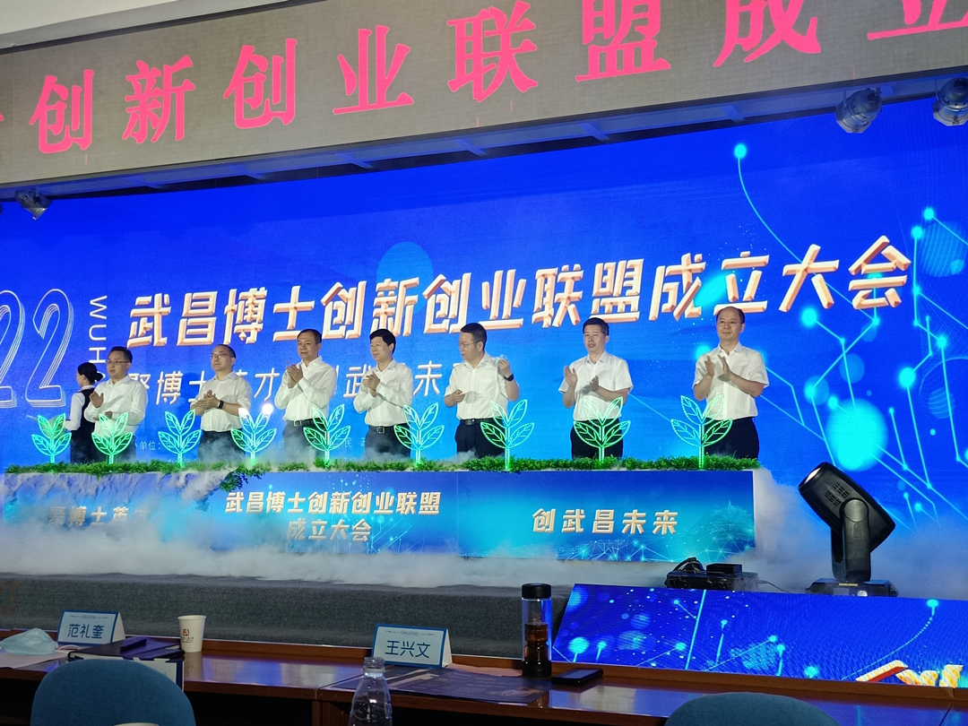 中共武昌區(qū)委書記余松致辭后,由中共湖北省委組織部副部長王煒、武漢市委組織部副部長姜鐵兵,武昌區(qū)區(qū)委書記余松、區(qū)長范禮奎等領(lǐng)導(dǎo)一起按下啟動(dòng)按鈕,宣布武昌博士創(chuàng)新創(chuàng)業(yè)聯(lián)盟成立。 ?