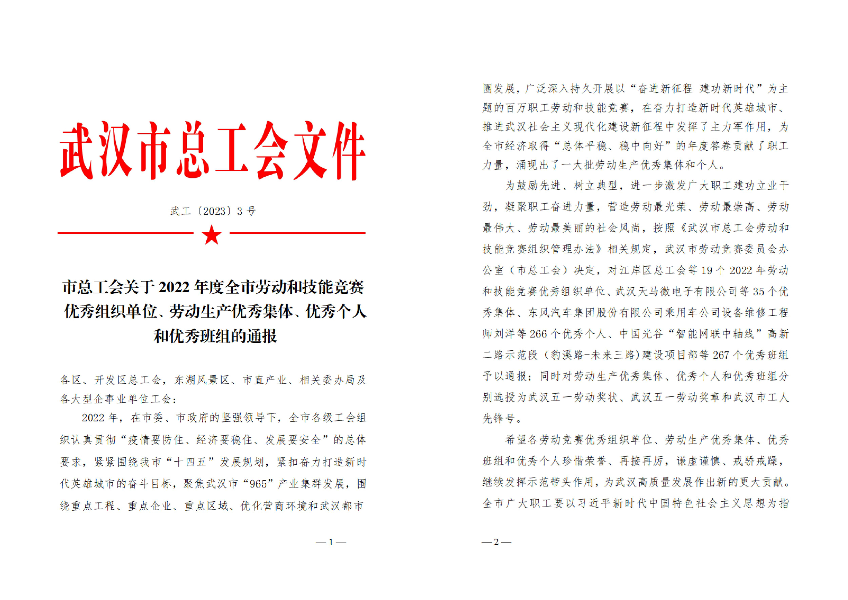近日,武漢市勞動競賽委員會辦公室、武漢市總工會對全市19個2022年勞動和技能競賽優(yōu)秀組織單位、35個優(yōu)秀集體、266個優(yōu)秀個人、267個優(yōu)秀班組予以通報,同時對勞動生產(chǎn)優(yōu)秀集體、優(yōu)秀個人和優(yōu)秀班組分別選授為武漢五一勞動獎狀、武漢五一勞動獎章、武漢市工人先鋒號。其中,永業(yè)行黨委書記、董事長潘世炳被授予“武漢五一勞動獎章”。