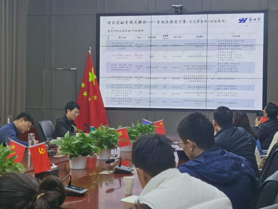 2024年1月8日下午, 武漢市市政機(jī)械化施工有限公司(以下簡稱“市政機(jī)施公司”)召開“新形勢下城市綜合開發(fā)建設(shè)政策解讀及實(shí)踐探索”為主題的培訓(xùn)交流會,永業(yè)行投資金融產(chǎn)業(yè)鏈副總經(jīng)理趙輝受邀作專題培訓(xùn)交流,市政機(jī)施公司副總經(jīng)理胡秉劼出席會議。