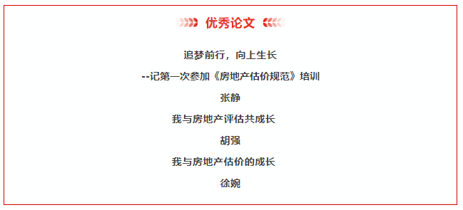 此外,永業(yè)行張靜、胡強、徐婉等三位估價師撰寫的《追夢前行,向上生長 -- 記第一次參加 <房地產(chǎn)估價規(guī)范> 培訓(xùn)》《我與房地產(chǎn)評估共成長》以及《我與房地產(chǎn)估價的成長》等論文也憑借其真摯的情感、詳實的案例和深刻的行業(yè)見解成功入選文集,為房地產(chǎn)估價行業(yè)的理論發(fā)展與經(jīng)驗傳承添磚加瓦。